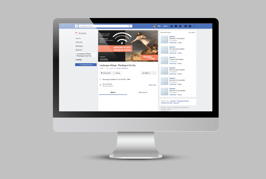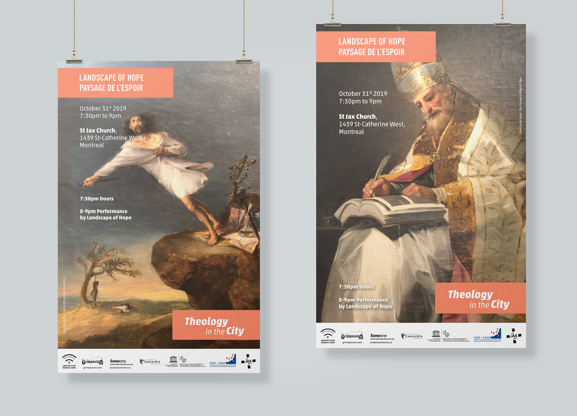 Posters and social media (Facebook and Instagram) visuals designed for Landscape of Hope / Paysage de L'espoir performance (2019).
