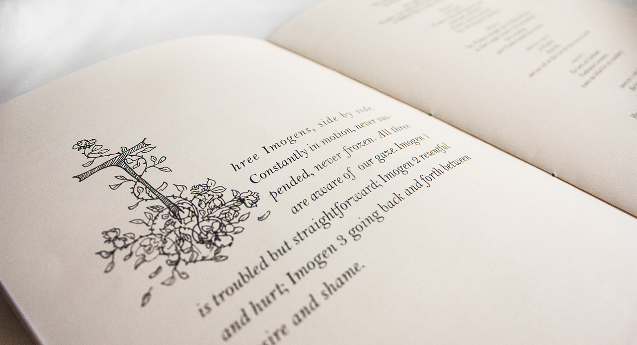 Typography and layout focused class project, based on script from video performance installation "Milford Haven, triptych" (Concordia University's matralab, 2012).